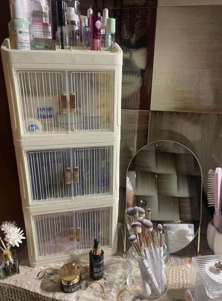 Everything looks much cleaner now and I can find my makeup so much faster. Very practical and nice looking