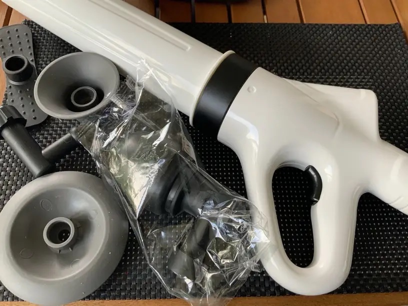 Simply attach the right head, press the plunger firmly over the drain, and pump to build pressure. Then pull the trigger to release the air blast.